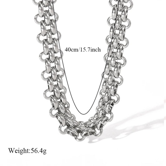 EILIECK 316L Stainless Steel Silver Color Cuban Chain Statement Necklace Bracelet Set Charm Fashion Women Waterproof Jewelry Set