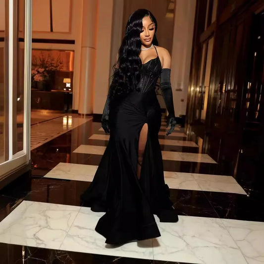 Long Dress Women Sexy Dresses Gown Sling Sleeveless Vestidos Halter Elegant Y2k Party Club Night Evening Sequin High Waist