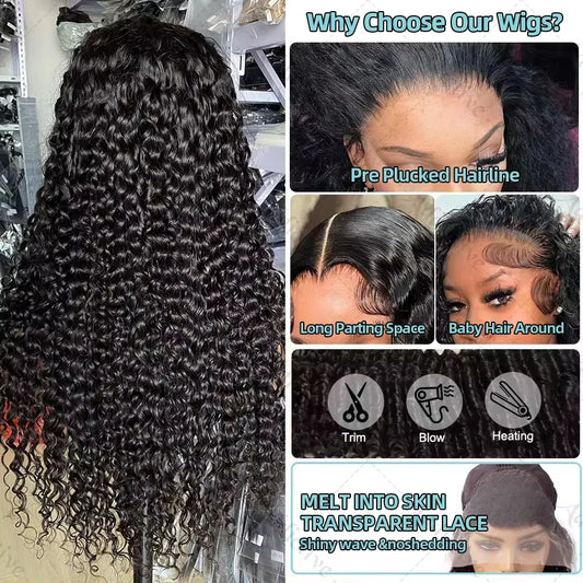 Luvin 40 Inch Deep Wave 13x6 HD Transparent Lace Frontal Human Hair Wigs 220 Density Remy 13x4 Water Curly Front Wig For Women