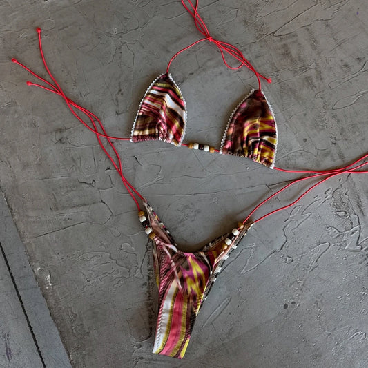 Micro Bikini 2025 Swimwear Women Swimsuit Sexy luxury Brazilian Bikini Set Halter Print Biquini Push Up Pearl Beachwear Female