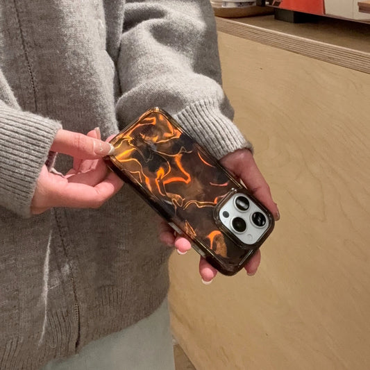 Retro Glossy Brown Amber Pattern Rendering Shockproof Protective Phone Case For iPhone 16 15 14 13 Pro Max 16 Pro Back Cover