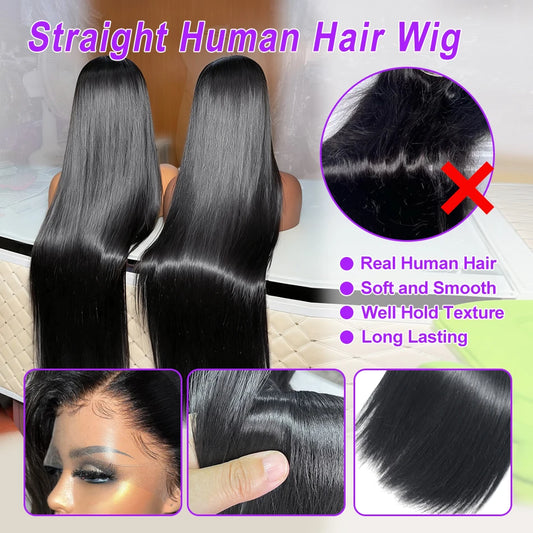 30 36 40 Inch Straight HD 13x6 Lace Frontal Wig 100% Human Hair 13x4 HD Lace Front Human Hair Wigs 250% Density Full Hair Wig