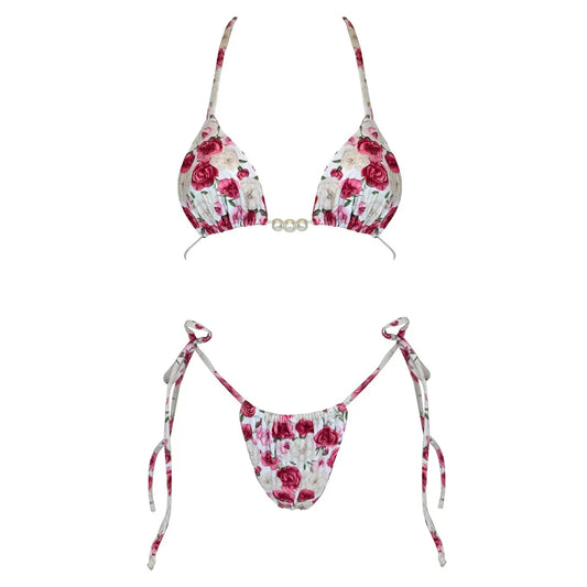 Micro Bikini 2025 Swimwear Women Swimsuit Sexy luxury Brazilian Bikini Set Halter Print Biquini Push Up Pearl Beachwear Female