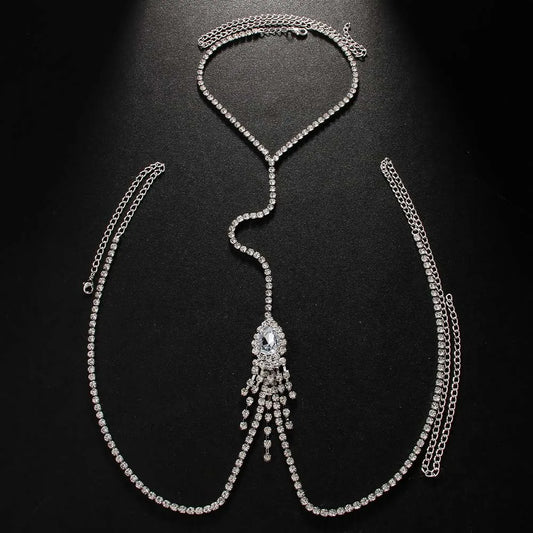 Stonefans Water Drop Tassel Chest Chain Necklace Jewelry Bohemian Women Rhinestone Fashion 2024 New Body Accessories Beach Sexy