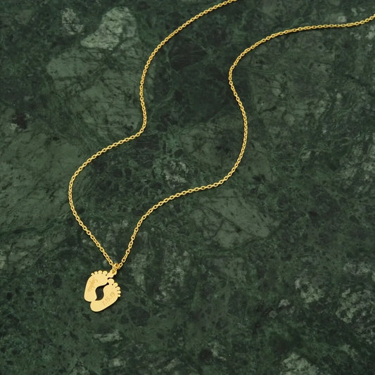 Custom Engraved Stainless Steel Baby Feet Name & Birthday Pendant Necklace Personalization Included Text Woman Jewelry