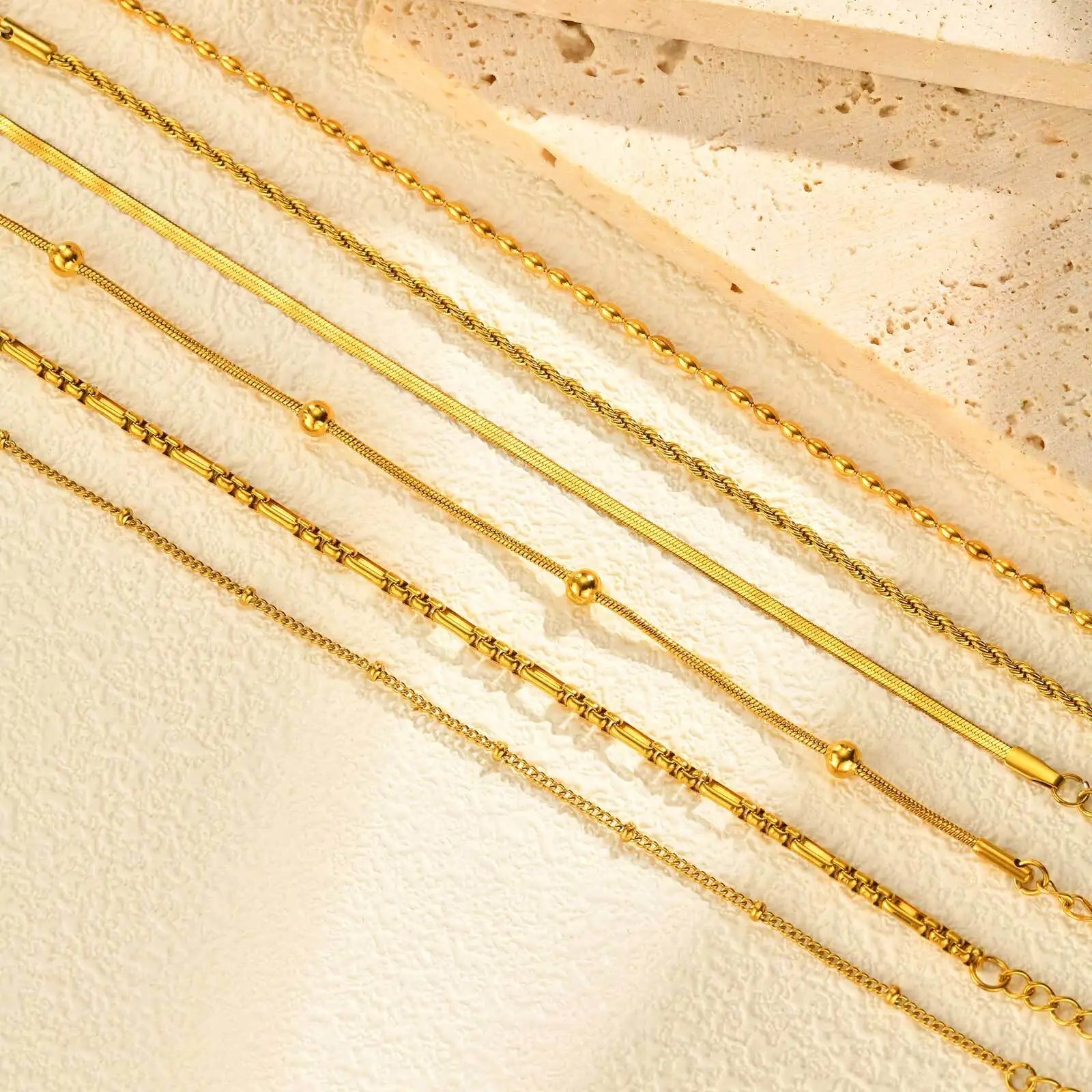 18K Real Gold Plated Bracelet Stackable for Women, Dainty Satellite Link Chain Bracelets Adjustable Minimalist Jewelry