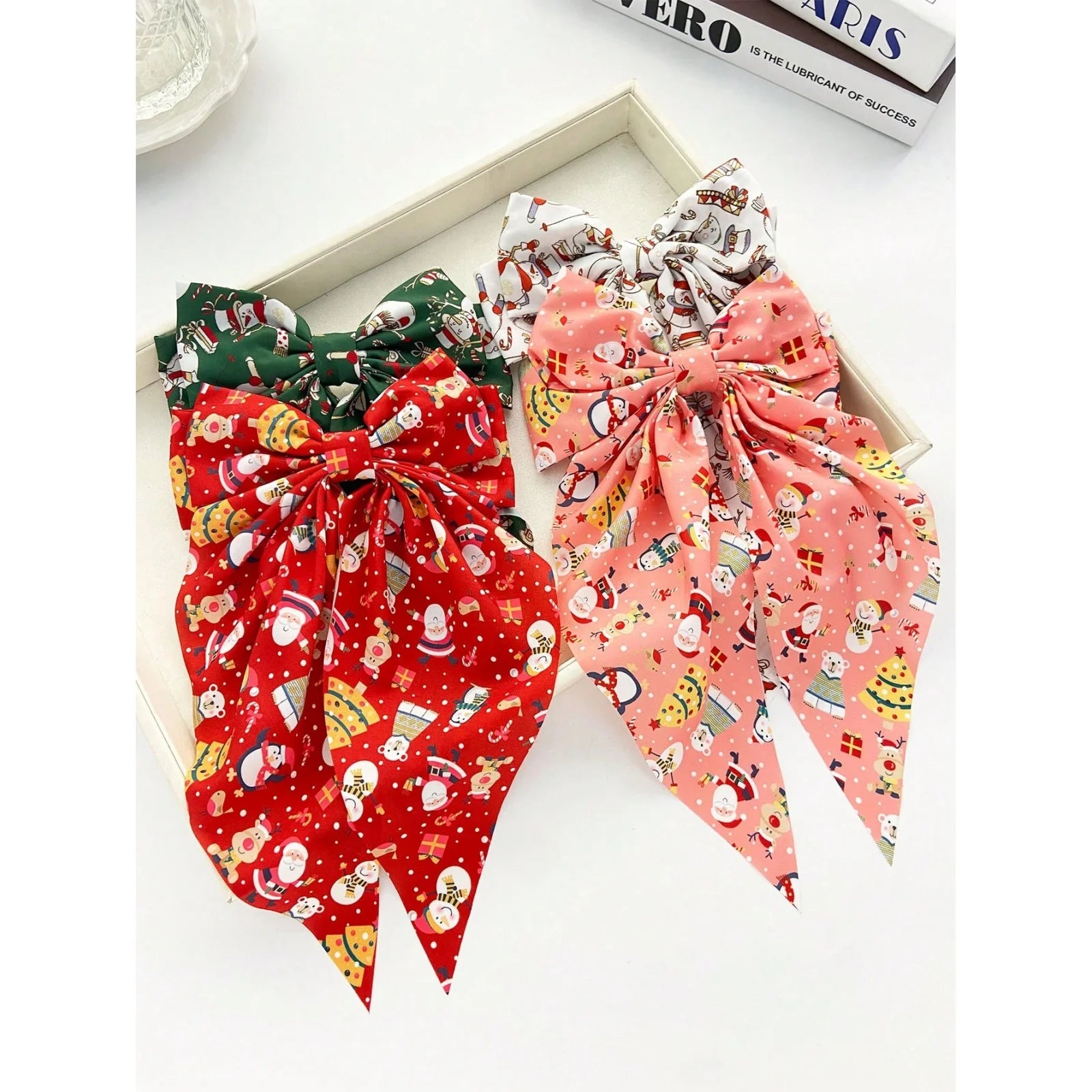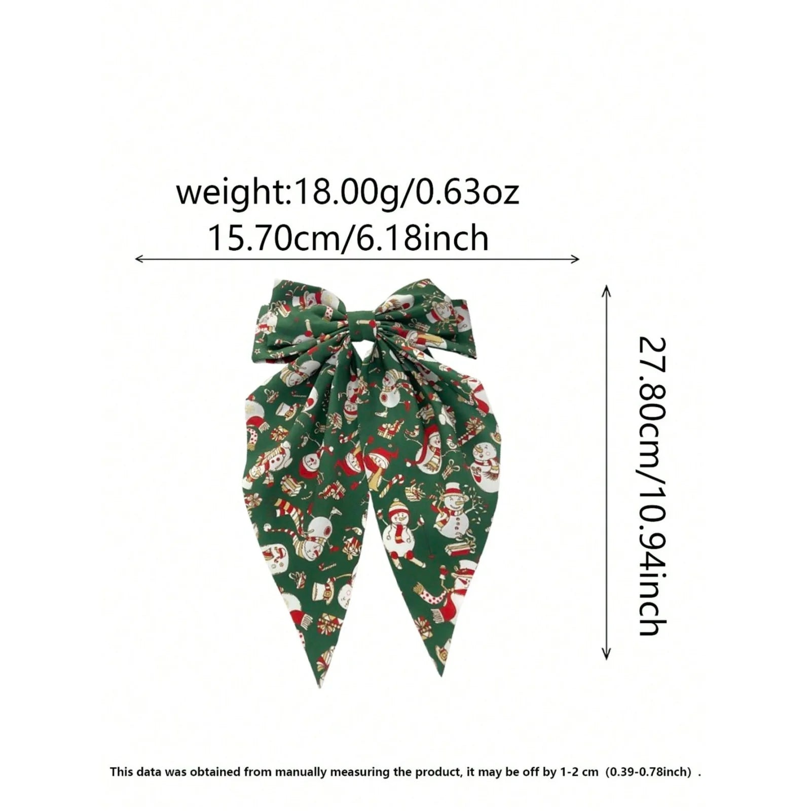 1pc Christmas Bowknot Long Tail Hair Clip, Polyester Fiber Material, Fashionable & Casual Hair Accessory, Suitable For Daily Com