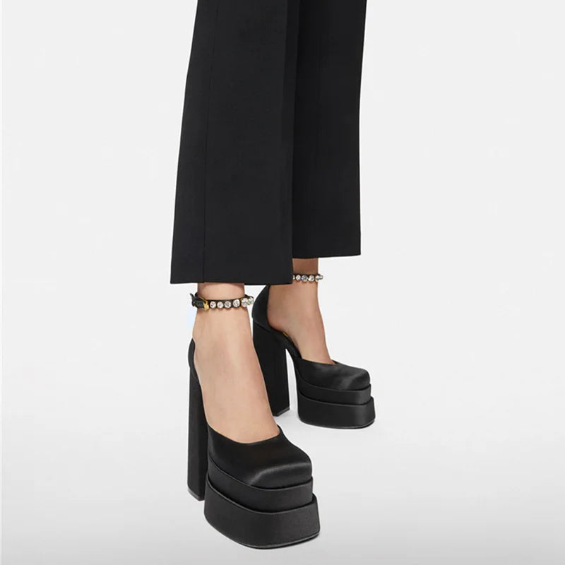 2022 Brand Women's Sandals 14.5CM Silk Thick Heels High Platform Rhinestone Small Big Size 32 43