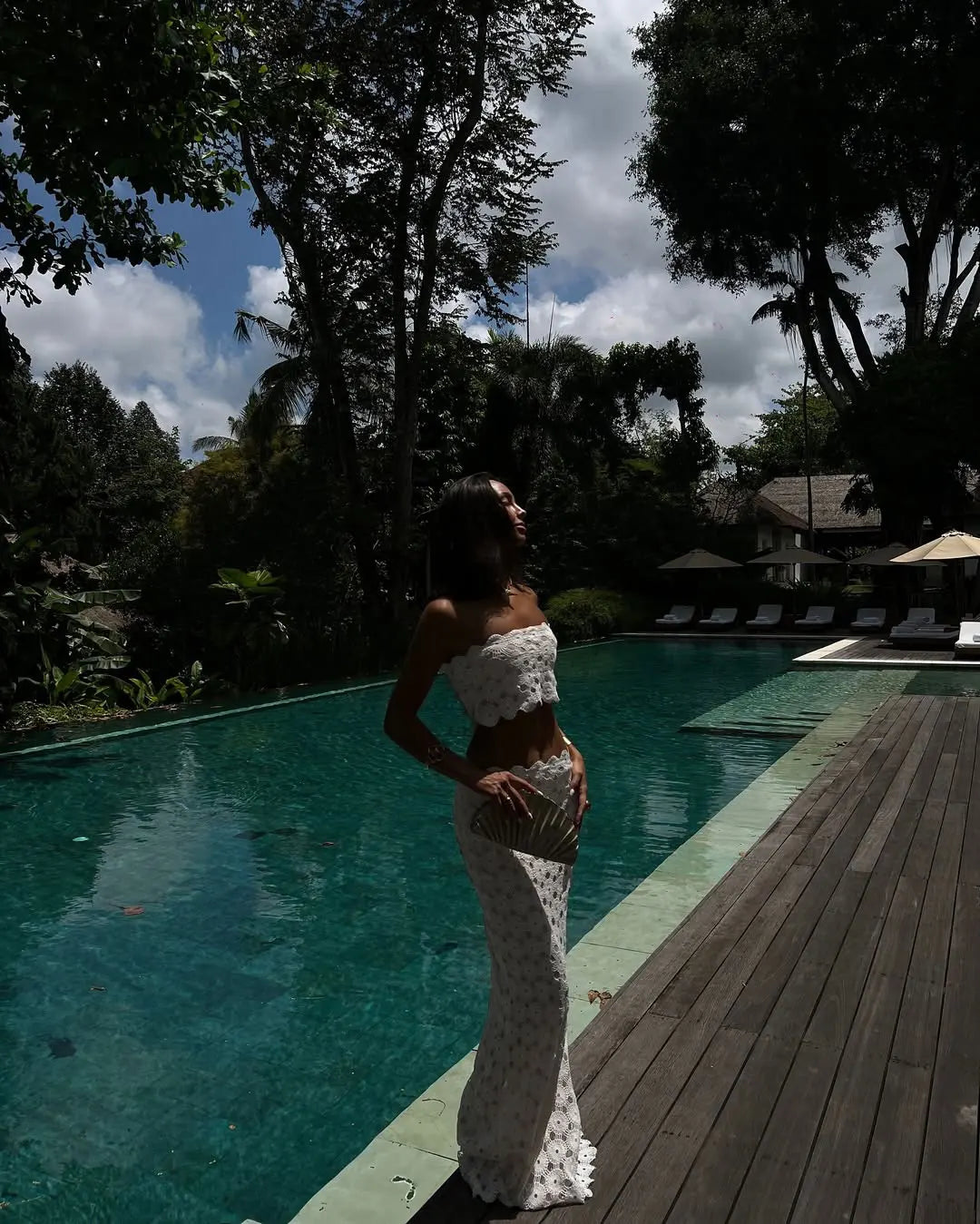 2025 New Tube Top Hollow Out Beach Dresses For Women 3 Piece Swimwear Bikini Mesh Swimming Elegant Cover-Up Skirt Sexy Vacation