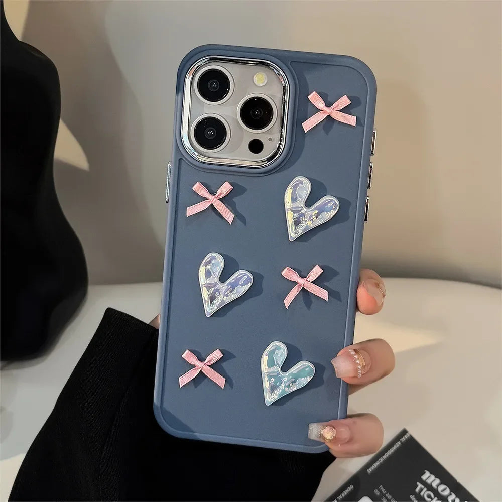 3D Pink Love Heart Bow Phone Case for IPhone17 16 15 14 12 13 11 Pro ProMax Mini Plus X XR Shockproof Phone Cover