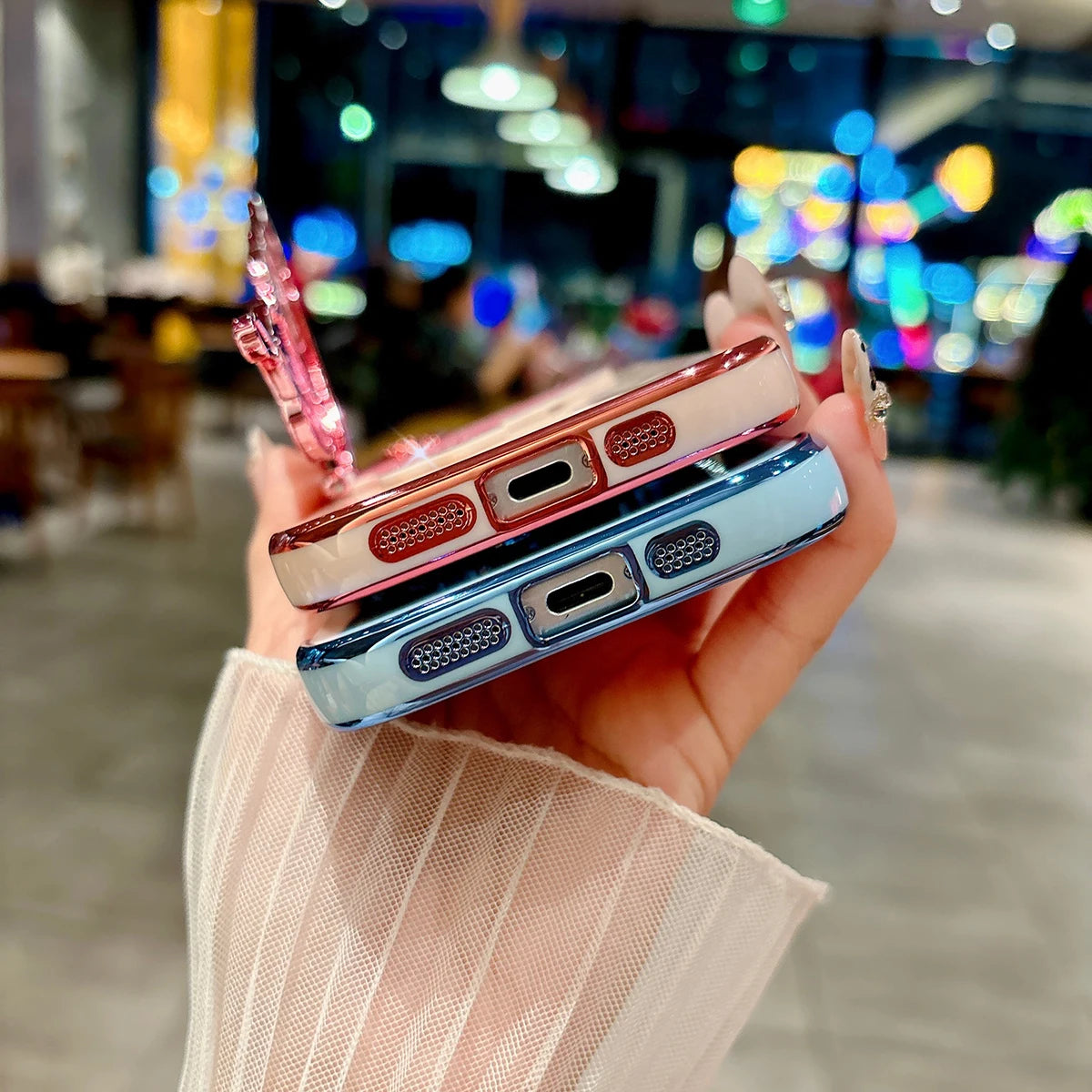 Glitter Butterfly Holder Phone Case for IPhone 7 8 16 15 14 Plus Pro MAx 12 13 Mini Side Pattern Drop Resistant PC Plating Case