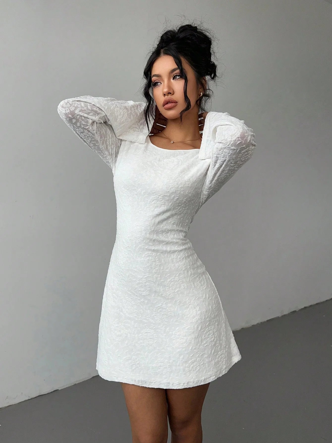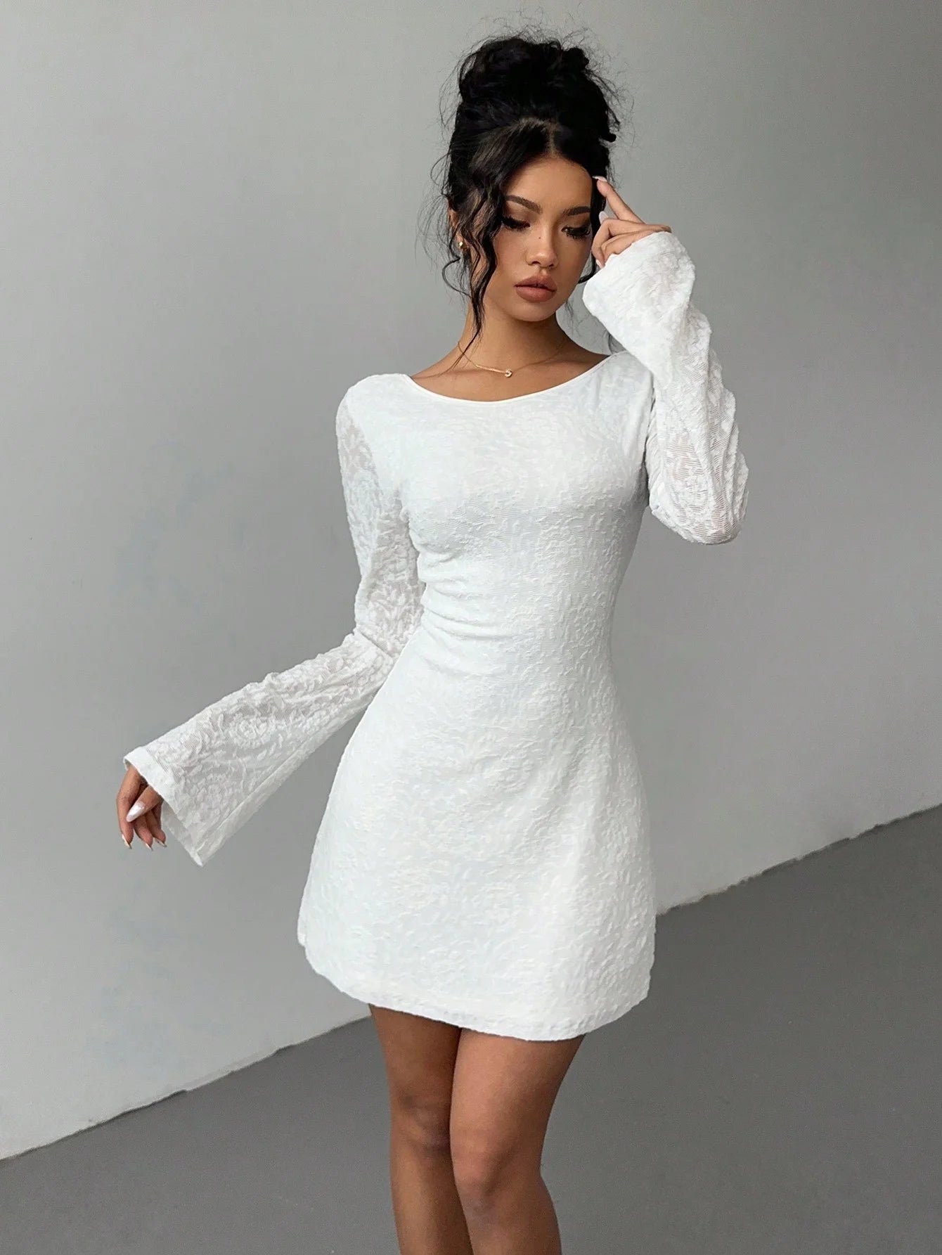 Hot girl backless strappy slightly sexy A-line dress, pure and unconventional design with flared sleeves and A cinched waist, au