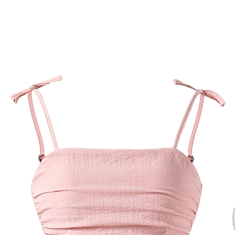Kids Set Solid Pink Tiered Sling Princess Dress Sweet Style Tween Girls Dress Birthday Party Dating Clothes
