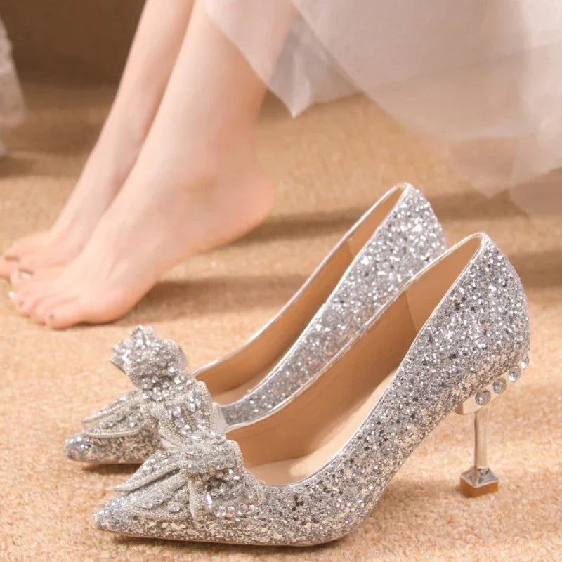 New Women's Rhinestone Wedding Shoes Year Shoes Luxury Buckle Decorative Banquet Women's Shoes High Heels Gold Silver Red