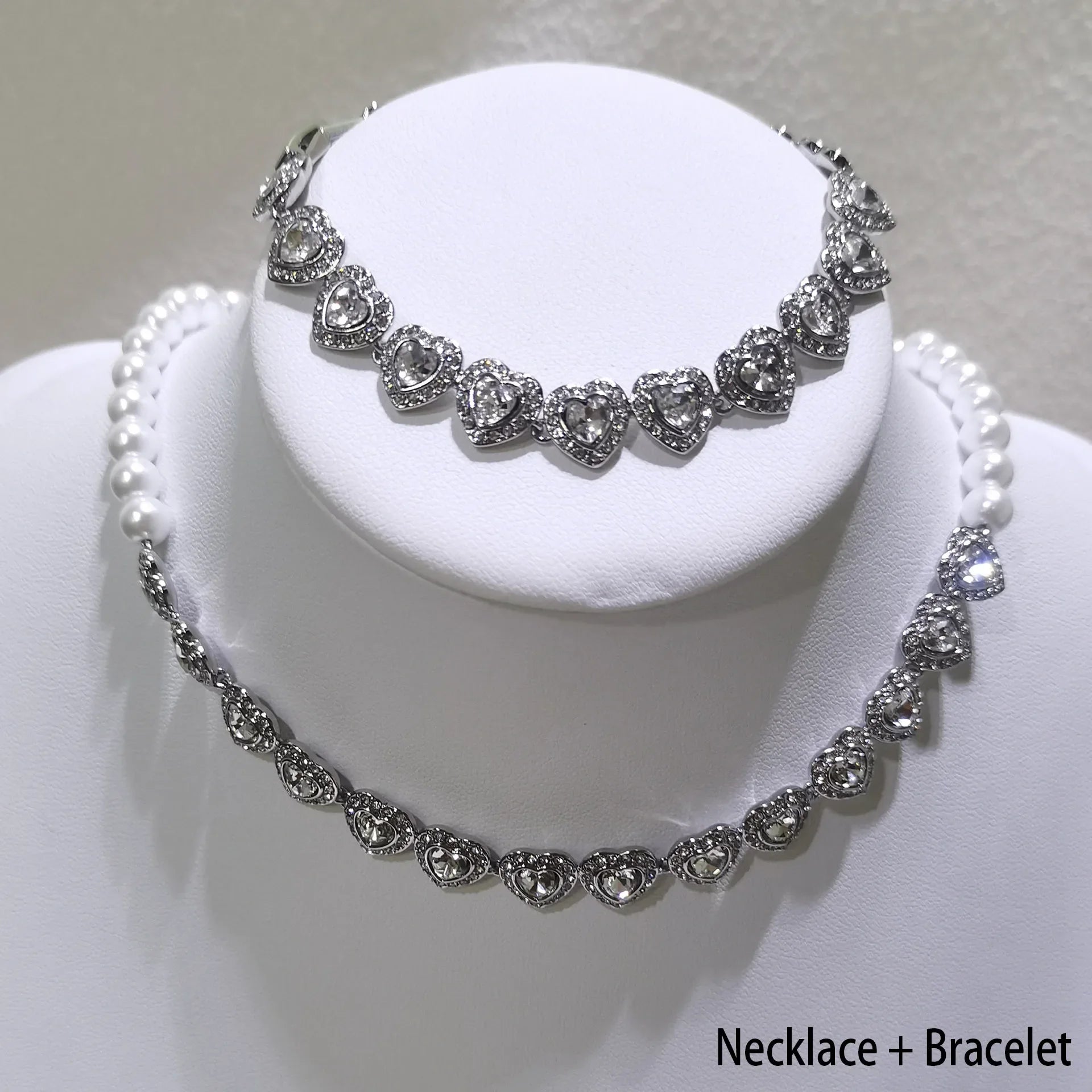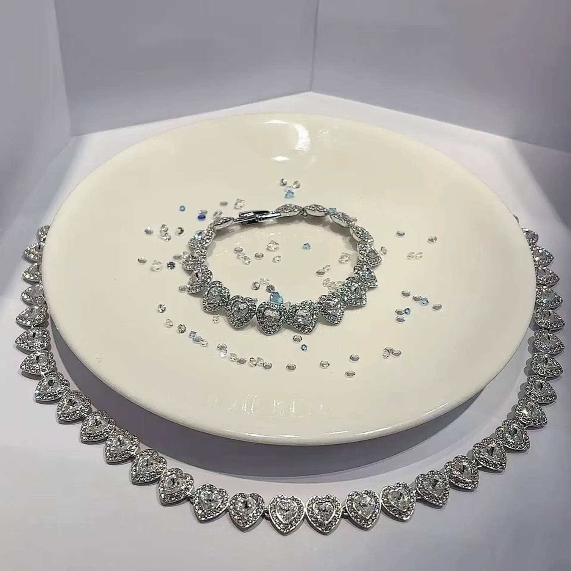 Original Princess Sparkling Crystal Wedding High-end Jewelry Set Charming Women's Heart-shaped Necklace Earrings Bracelet Ring